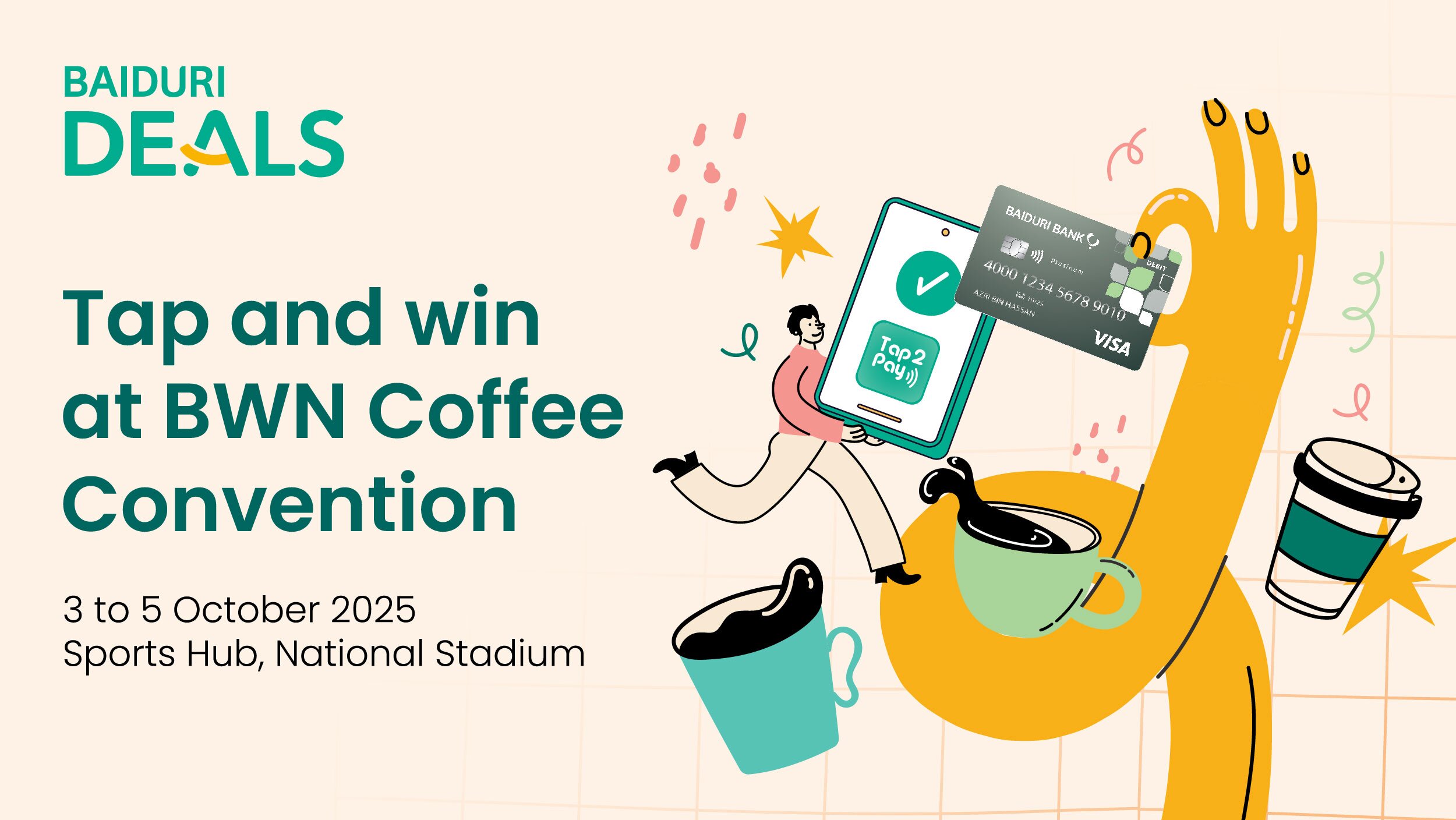 4.4 Eligible Cardholders must make payment with a Baiduri Credit or Debit Card through Baiduri Tap2Pay at the Event for this Offer to apply.