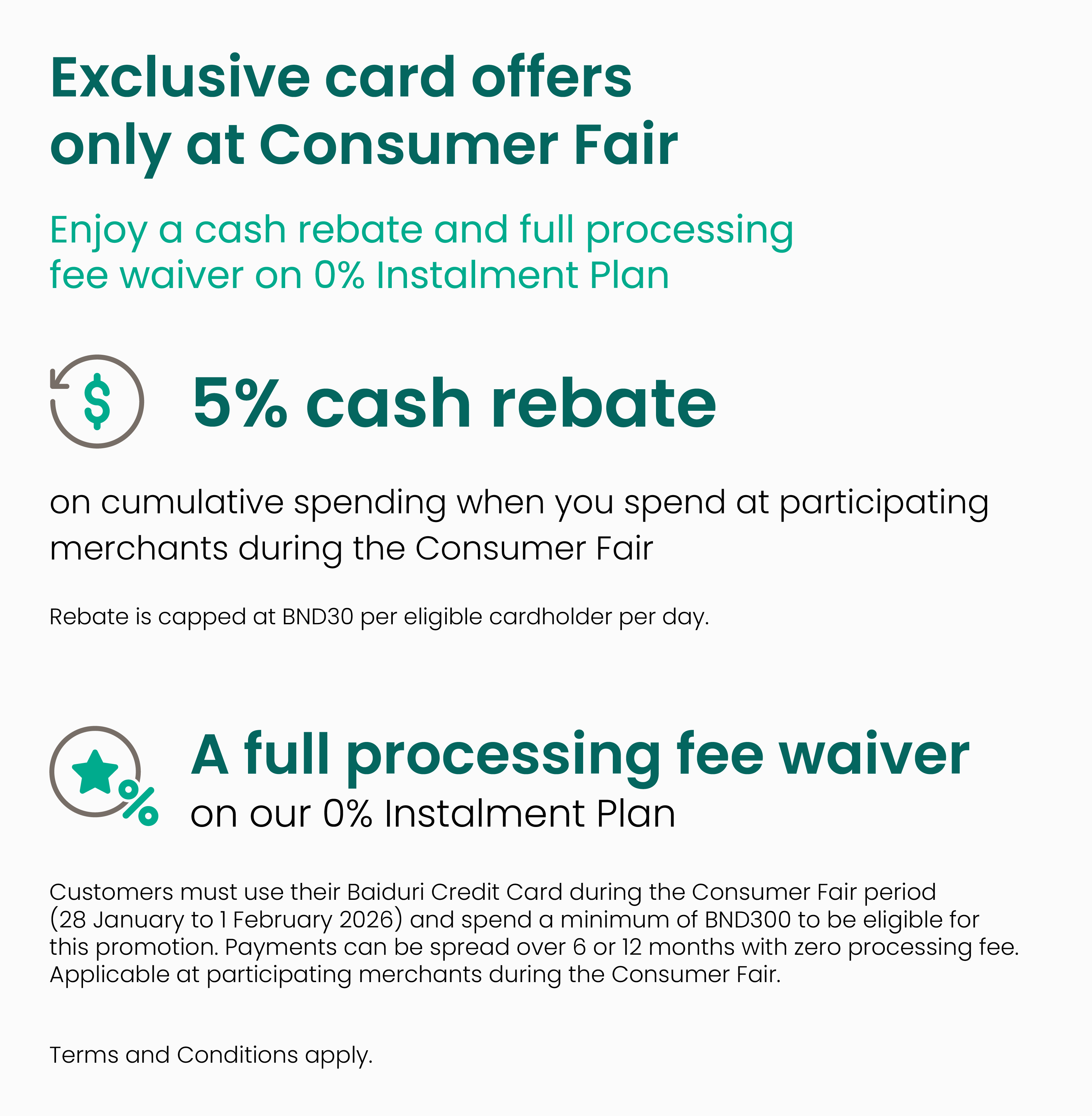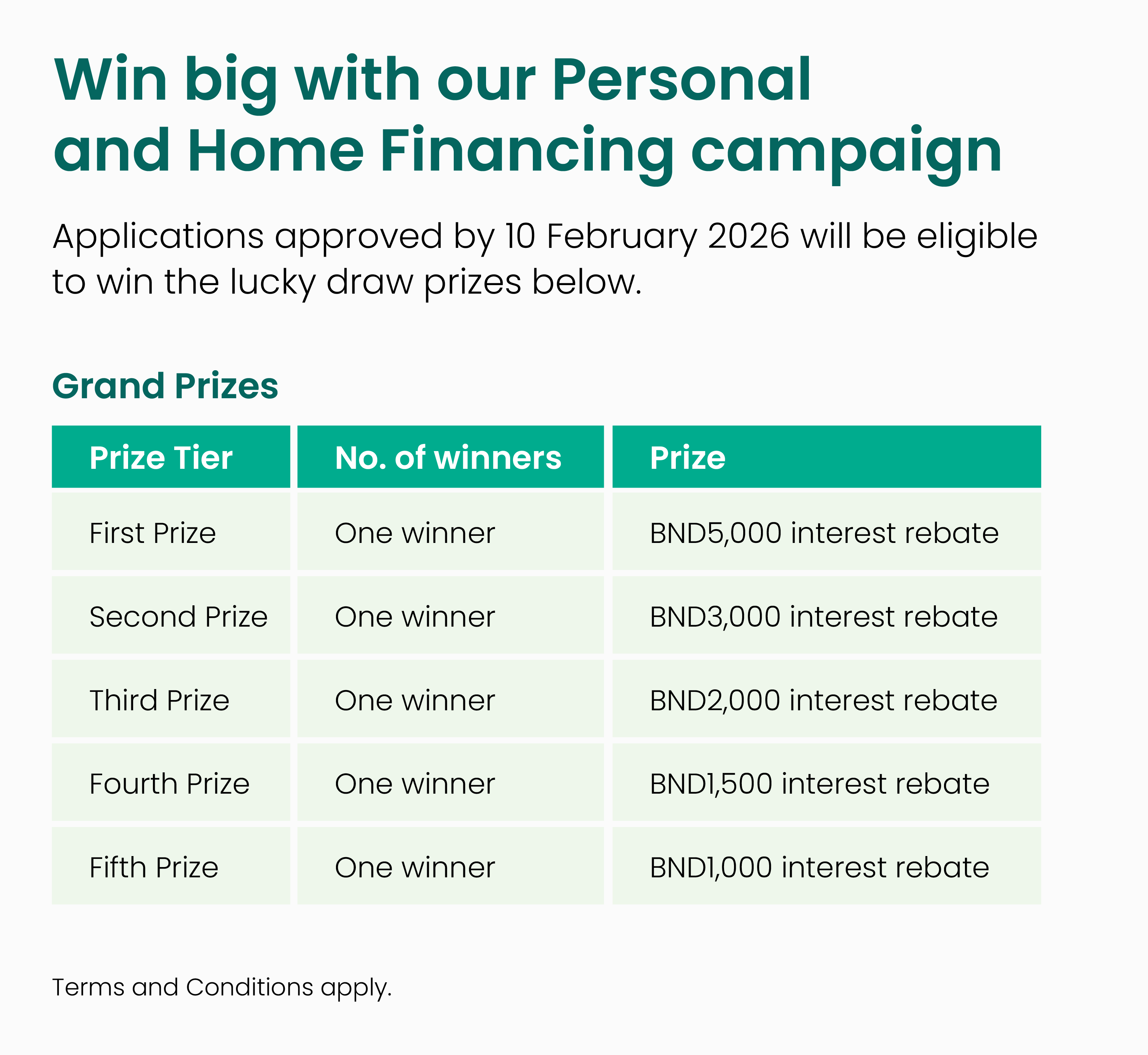 4.3.12 For prizes awarded in the form of vouchers, the Bank makes no representation or warranty on the quality, merchantability, or fitness for purpose of any goods or services redeemed. Any disputes arising from the use of such vouchers must be resolved directly with the relevant merchant. For prizes awarded in the form of interest rebates, the Bank’s liability is limited solely to crediting the applicable rebate amount to the winner’s financing facility.