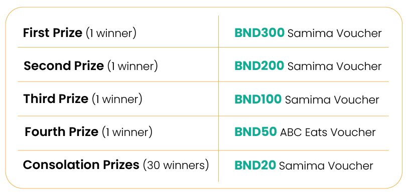5.5 Winners of the Draw will be notified by phone based on their registered phone number(s) in the Bank’s record. Prizes must be collected personally by the Winner or by an authorised representative at their preferred Samima outlet.